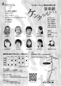 Copyright © 2026 子どもから大人まで楽しめる宮澤賢治の音楽劇・全国の小学校・幼稚園・保育園の演劇鑑賞会への出張公演 ミルキーウェイ All rights Reserved.